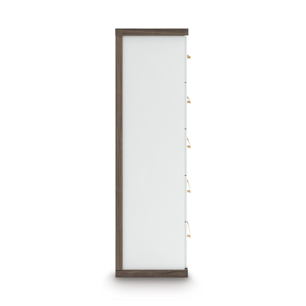• Two-tone finish (dark brown finish over replicated walnut grain; matte white finish)