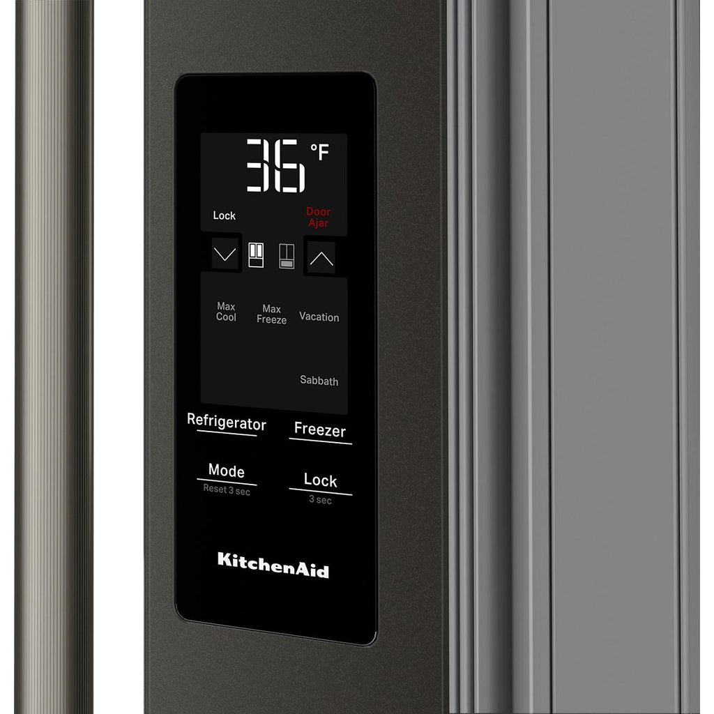 Le panneau de commandes tactiles sur l'extérieur de la porte mettent les fonctions du réfrigérateur à portée de main pour un réglage rapide et facile de la température, de la machine à glaçons et du filtre à eau. La conception lisse épurée est facile à nettoyer.